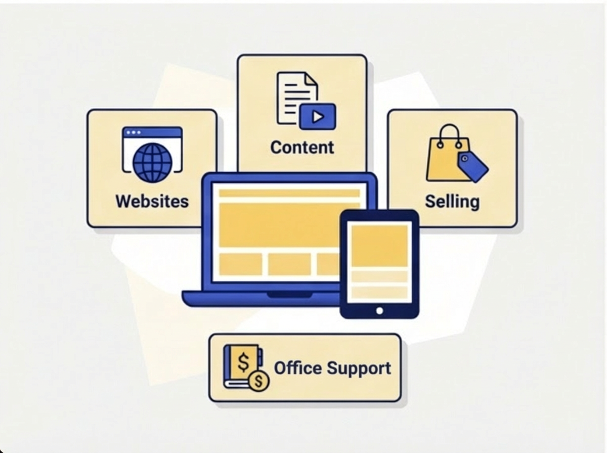 Under one roof, we handle everything from website design and social media to e-commerce and point-of-sale setup. Our services are built around your goals—helping you look professional, stay consistent, and sell with confidence.